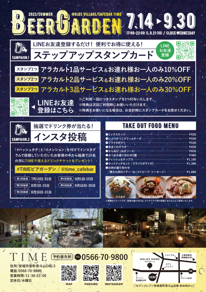 ■場所:cafe&bar TIME(ホロスビレッジ中庭/安城市里町壱斗山246-3)