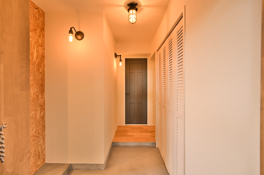 ・壁と天井には、ヨーロッパの漆喰塗り アクセントで板張り&塗装