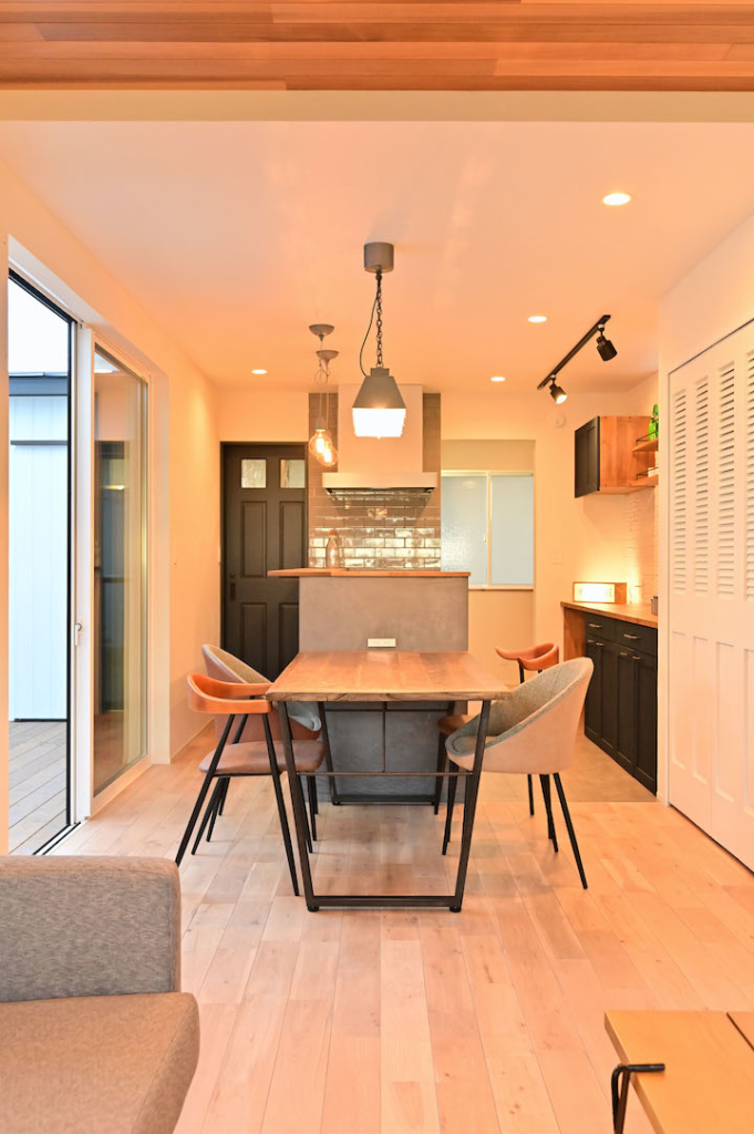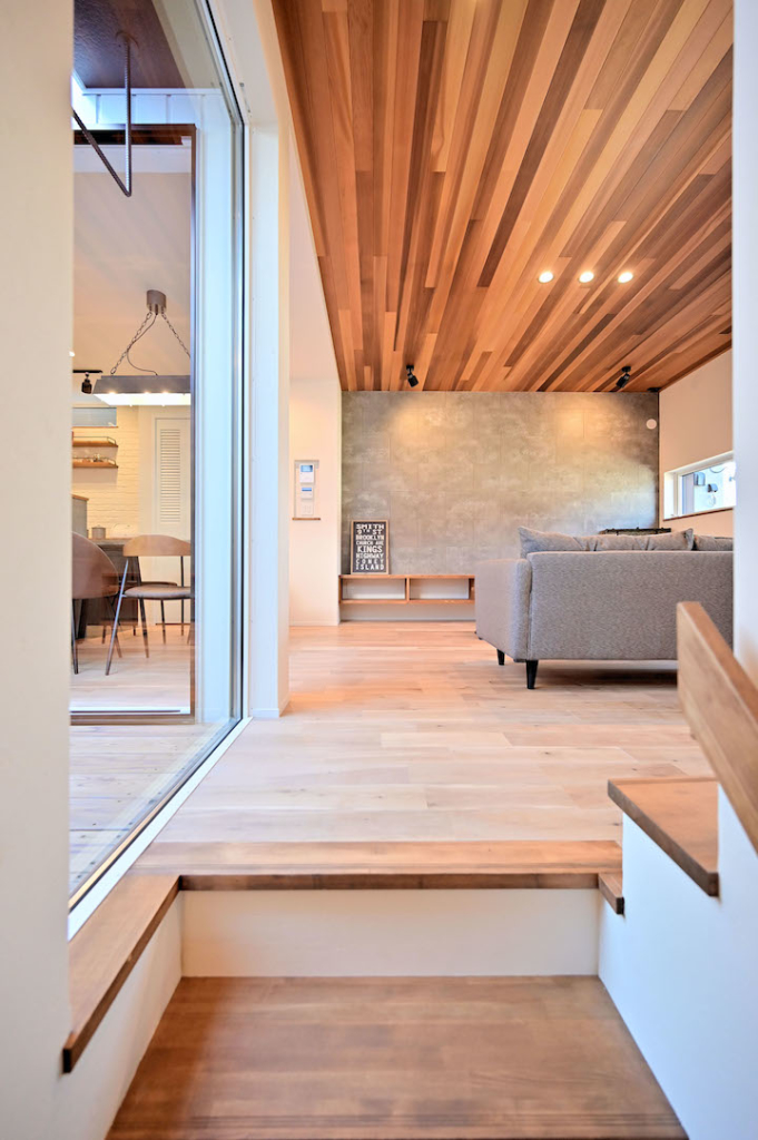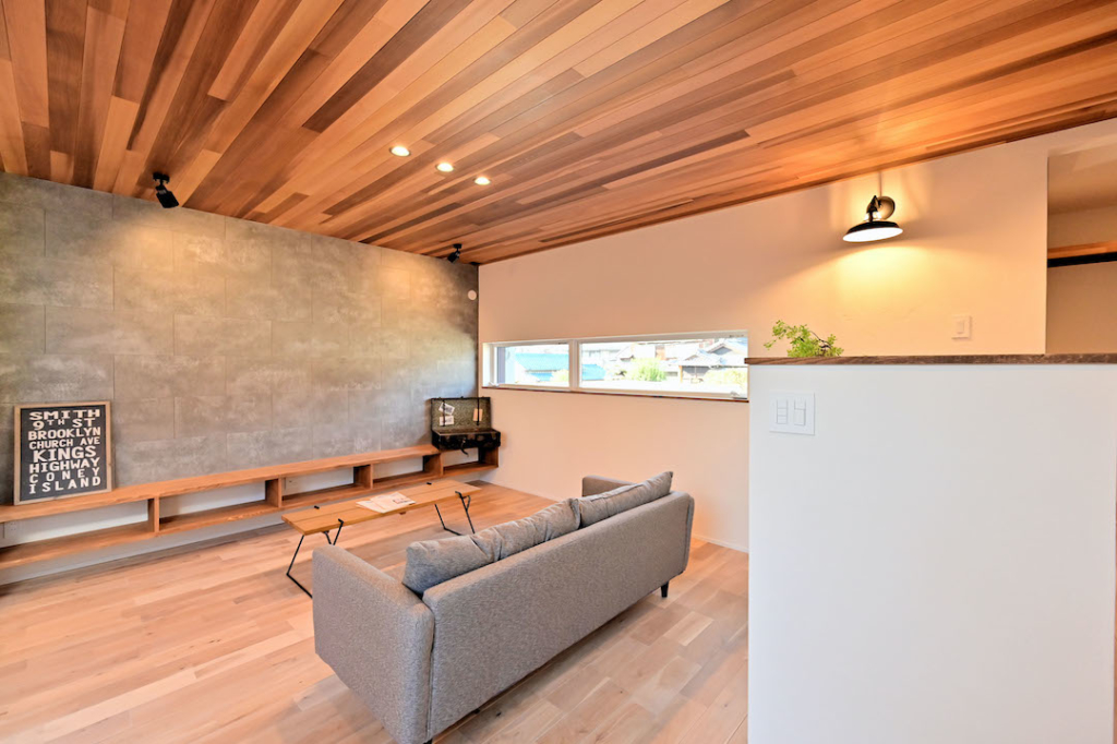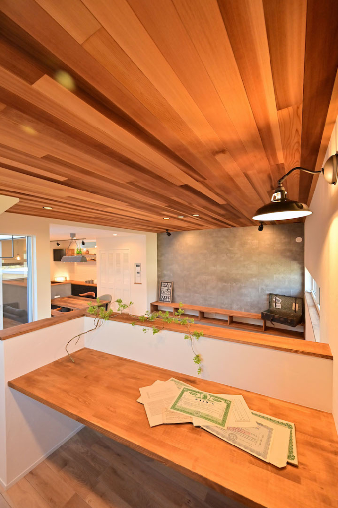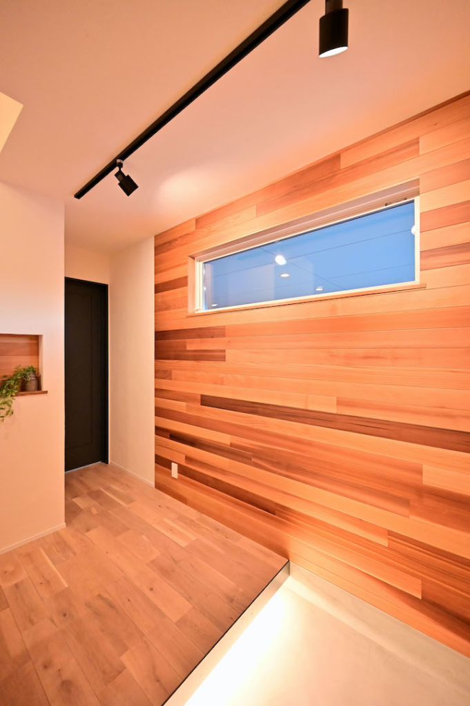 アクセントウォールにはレッドシダーやセメントボード