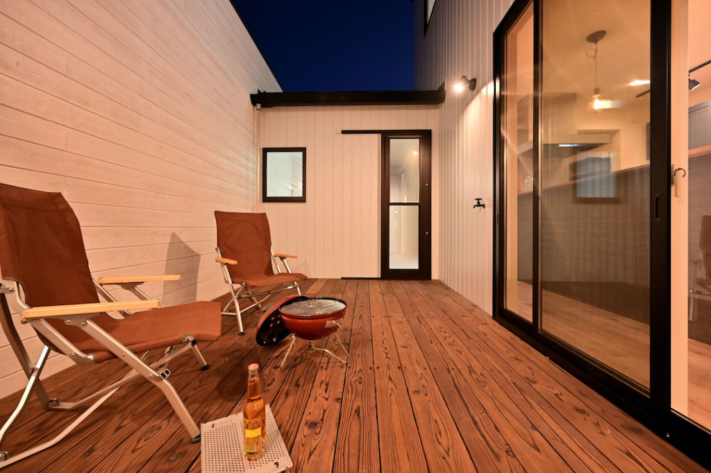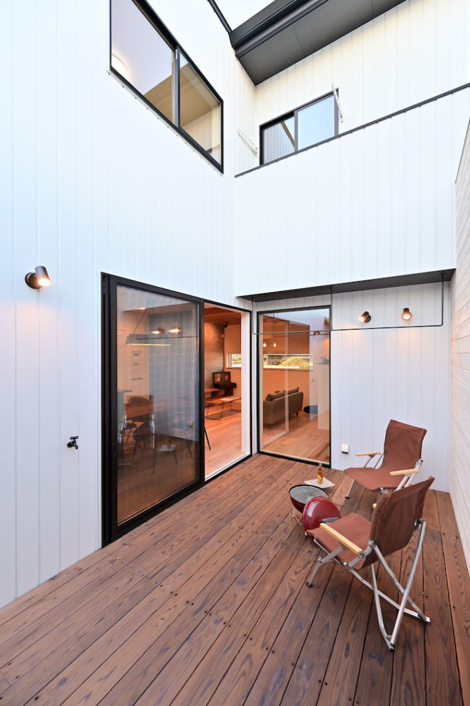 リビングと洗面所から出入りできる完全プライベートなライトコート
