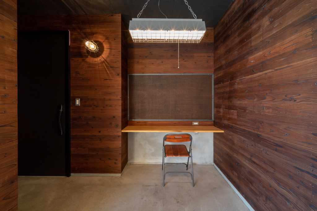 杉板で囲まれた趣味スペース