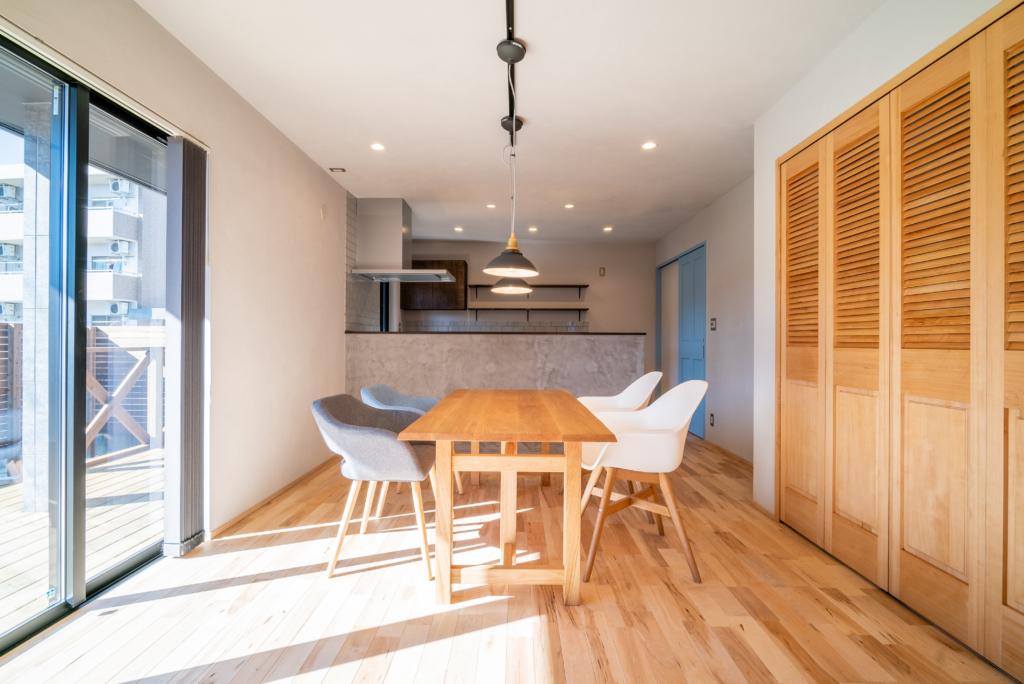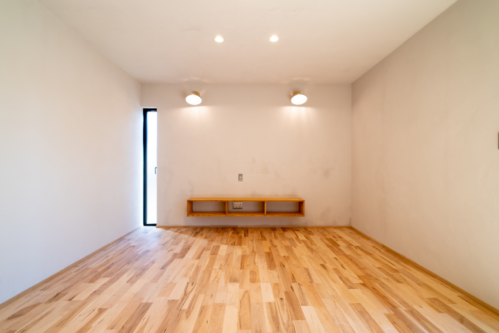 床材は、メープルの無垢フローリング