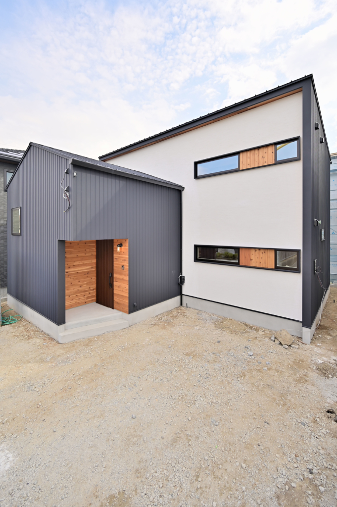ガルバリウム鋼板とヨーロッパの漆喰を組み合わせた外観