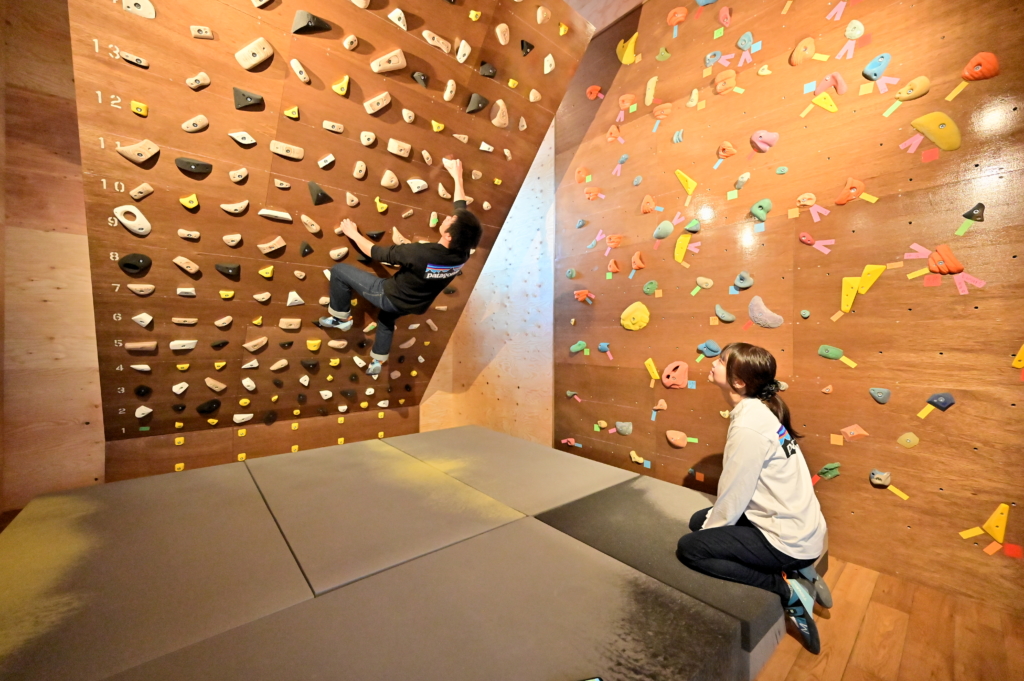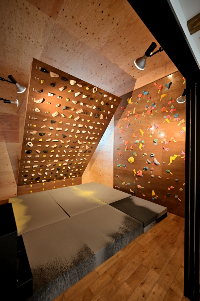 世界基準のクライミングウォールのある、ボルダリングルーム