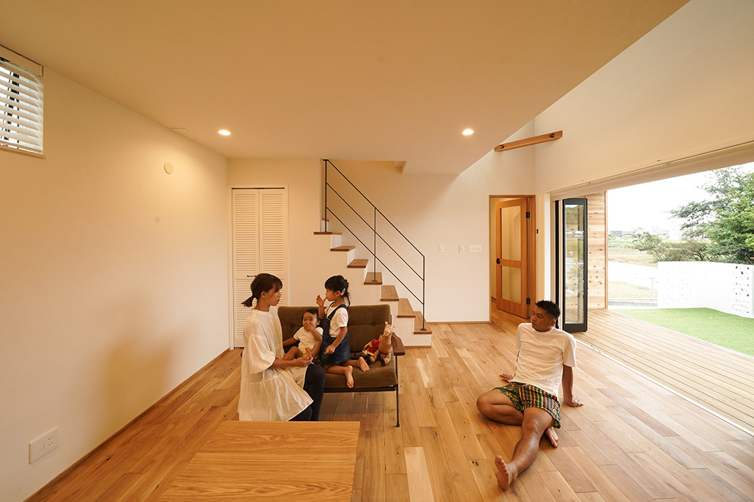 ウッドデッキとシームレスに繋がったLDK。家族時間をもっと豊かにしてくれます。