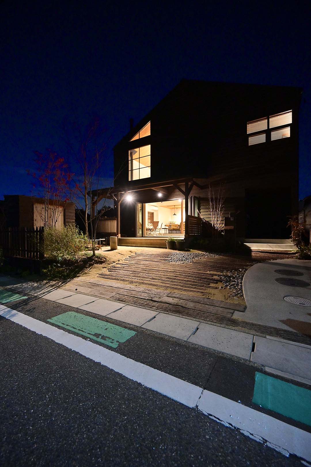 昼とは違った表情を見せる、夜のサブローモデルハウス。