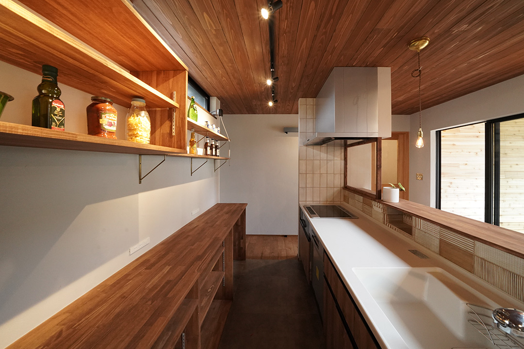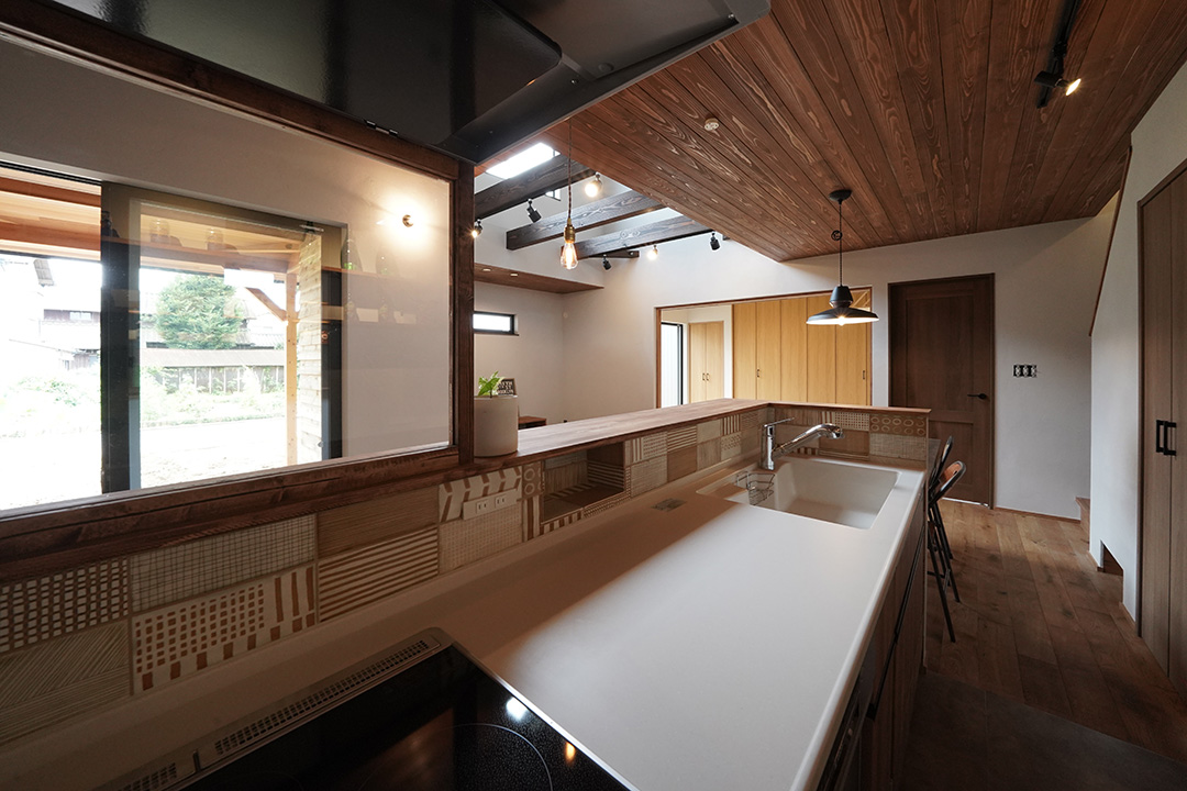・キッチンや洗面化粧台にはタイル張り