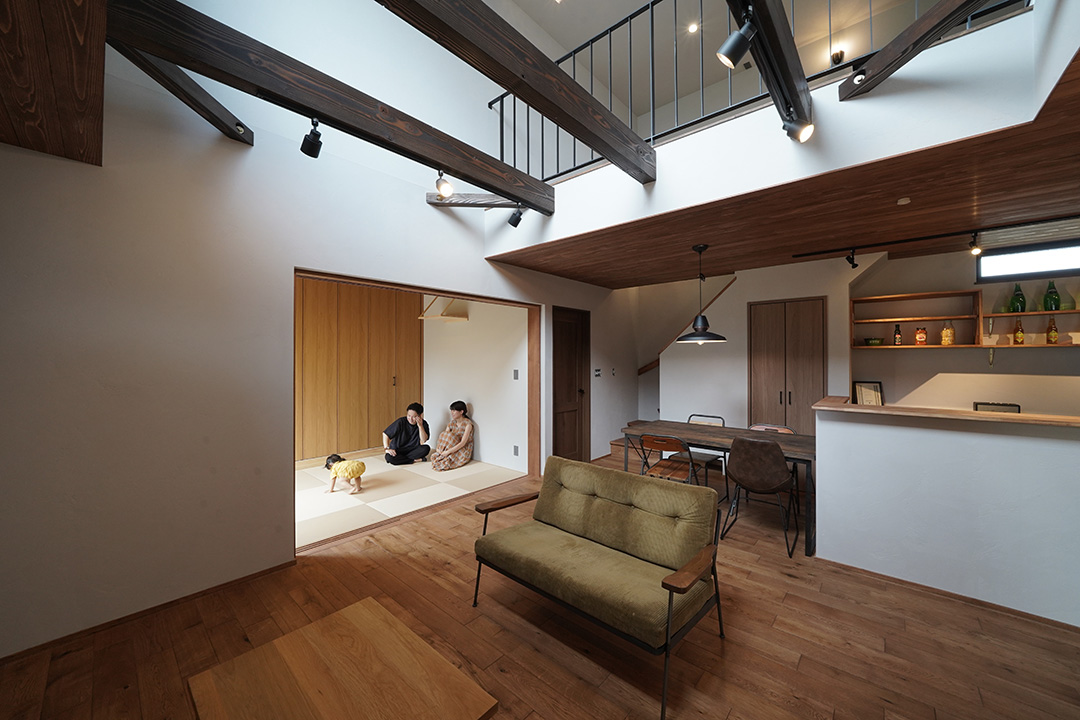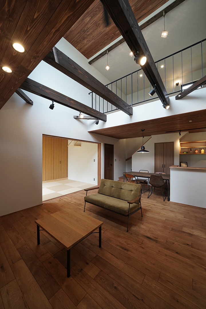 ・リビングには大きな吹き抜け