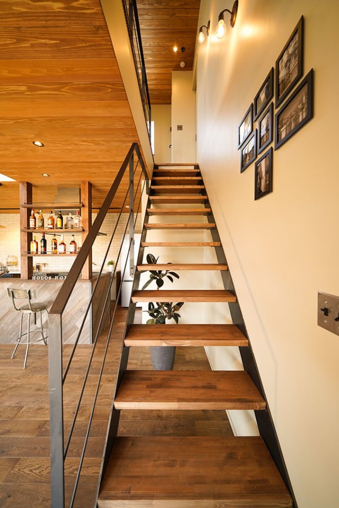 鉄骨の階段とアイアン手すり。