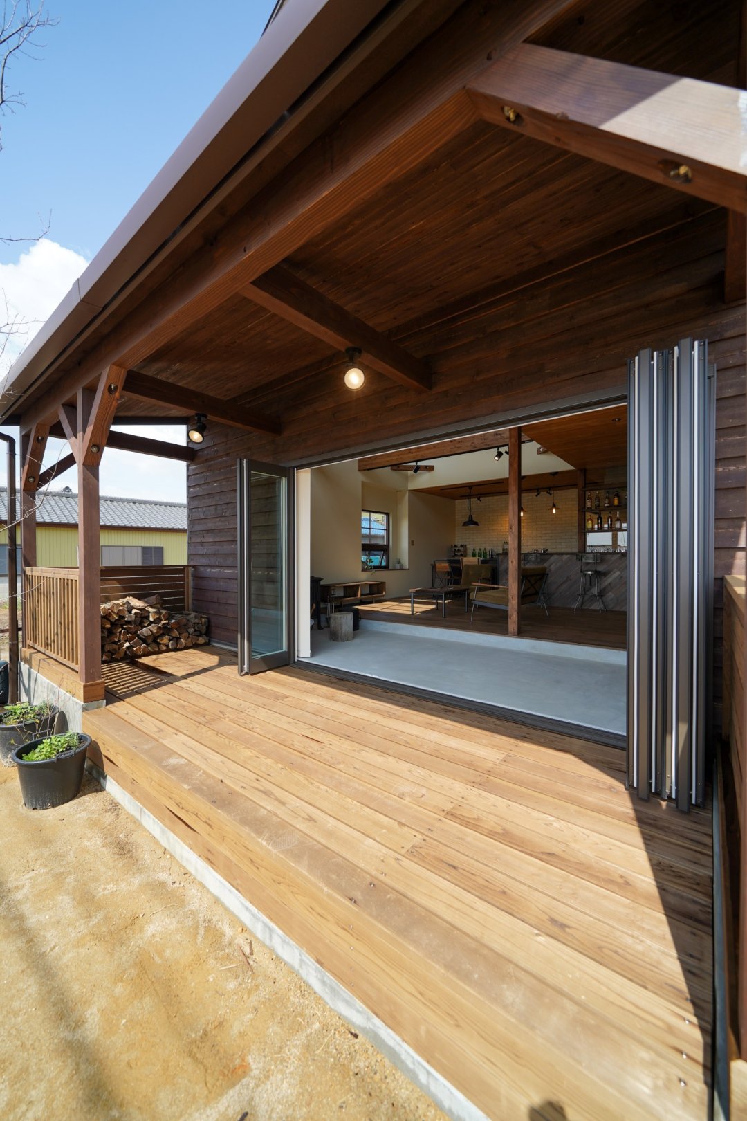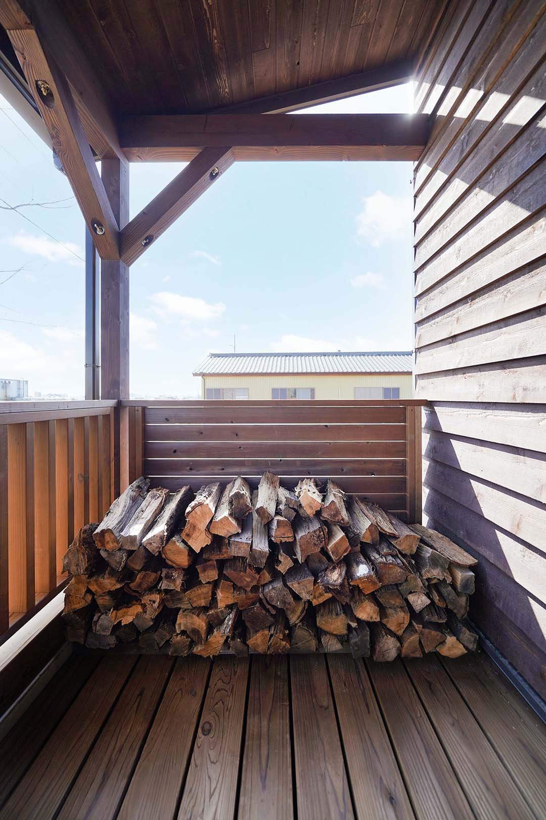 ウッドデッキの奥には、薪置場があります。