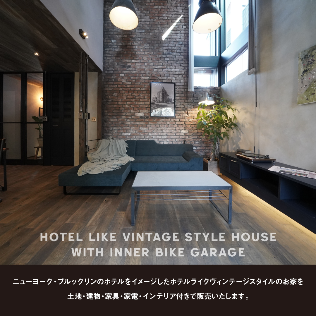 ニューヨーク・ブルックリンのホテルをイメージしたホテルライクヴィンテージスタイルのお家を、土地・建物・家具・家電・インテリア付きで特別価格にて限定販売いたします。