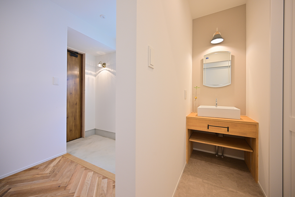 洗面ボールが一体型のサニタリースペース。