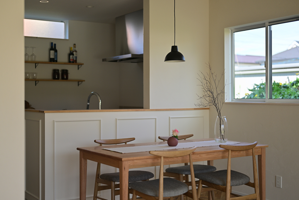 6人がゆったりと座れるくらいに広めに設計されたダイニングスペース。