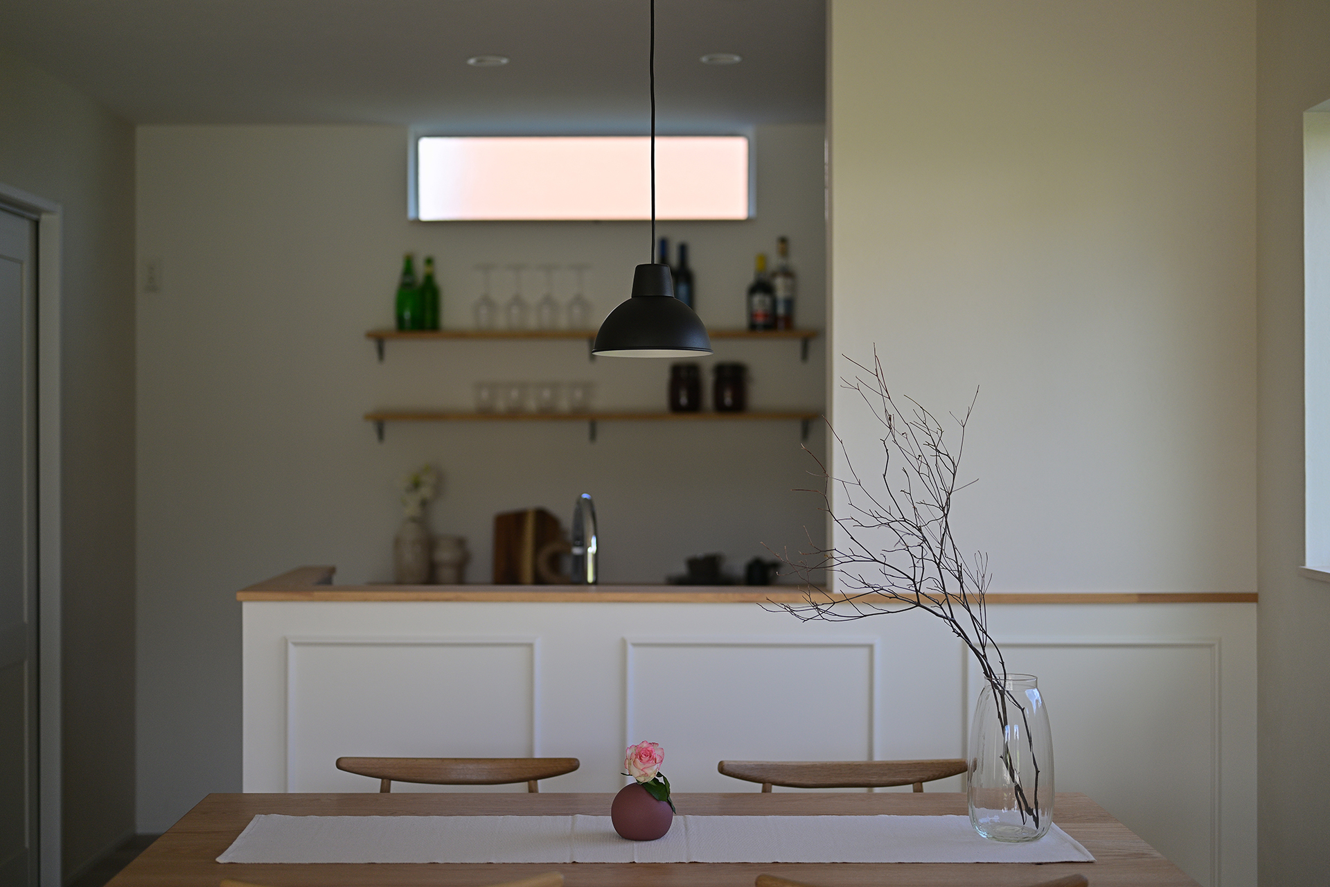 対面カウンターの良さとコンロ周りの汚れ防止を兼ねたいいとこ取りの設計を採用。