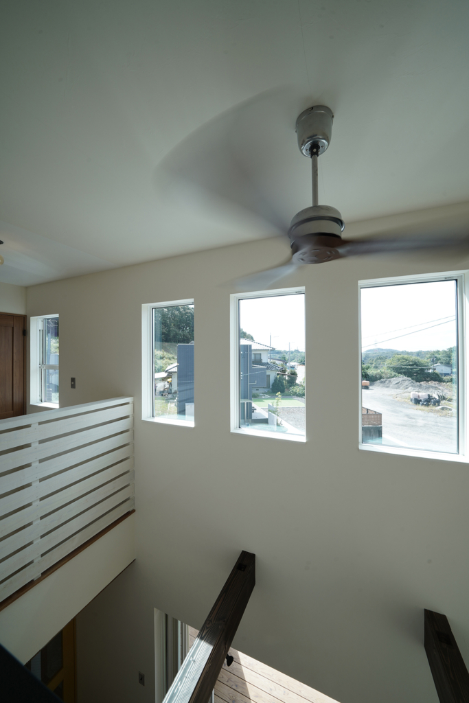 造作窓からシーリングファンが見ることが出来て、明かりも取れるようになっています。
