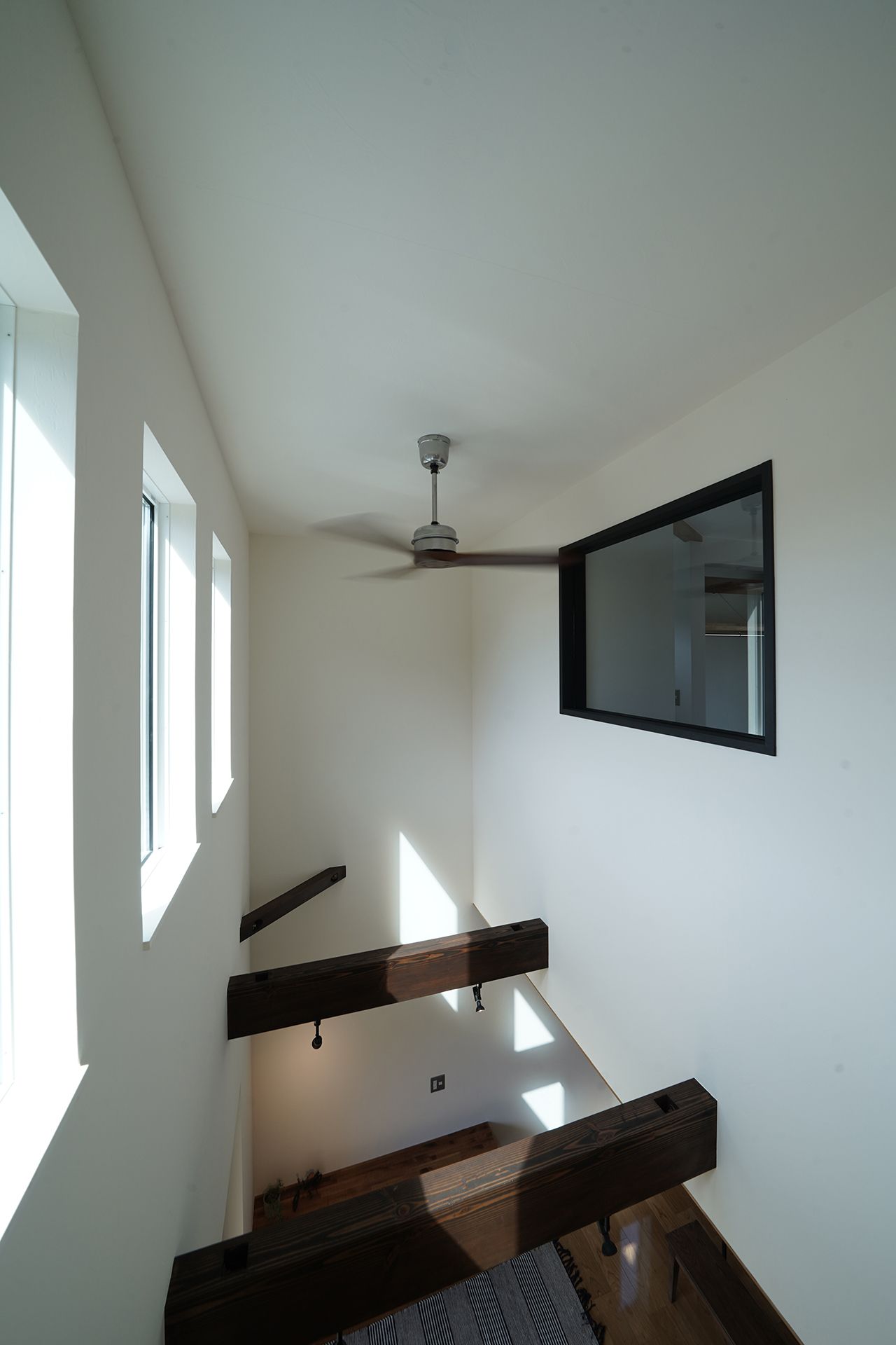 造作窓からシーリングファンが見ることが出来て、明かりも取れるようになっています。
