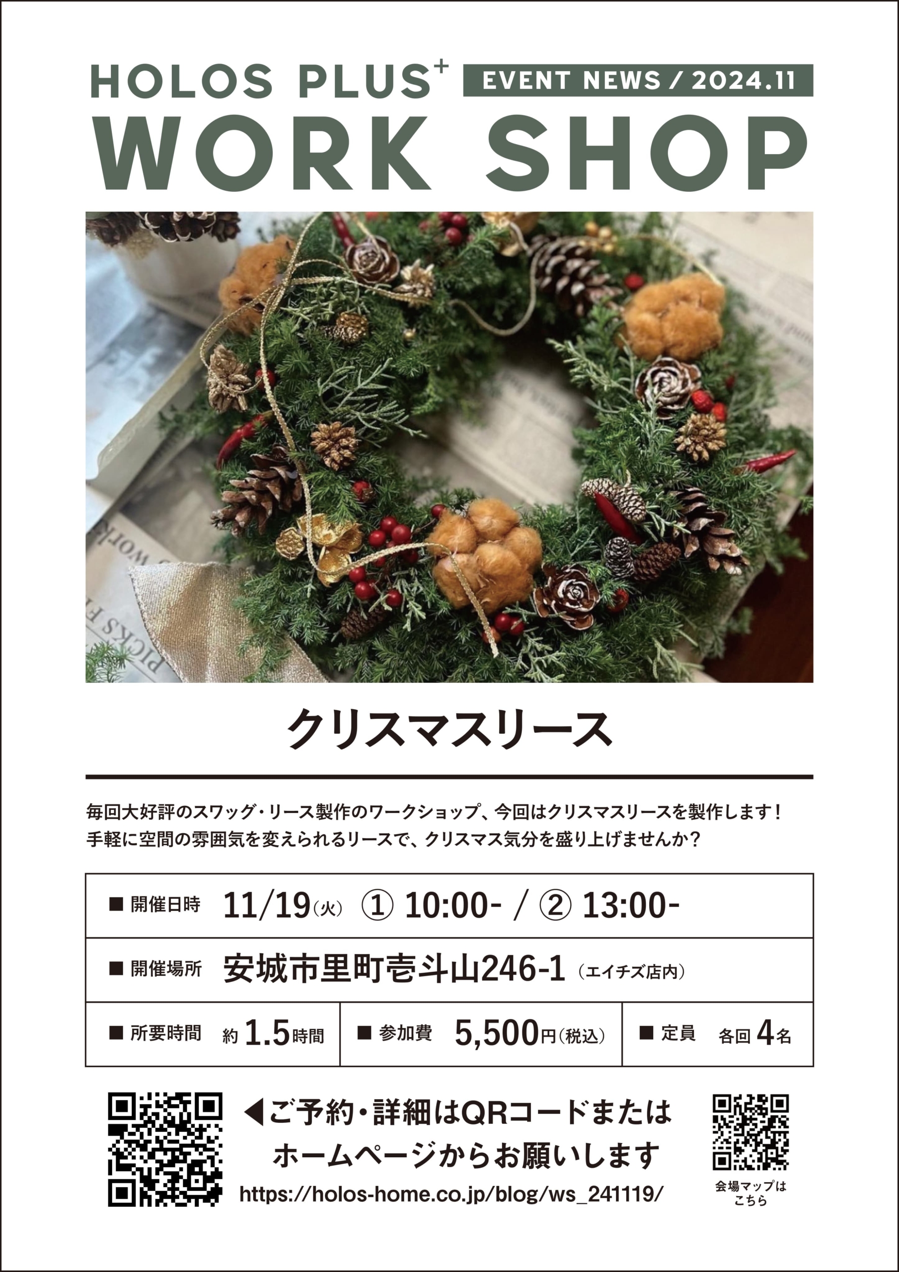 ■締め切りました【11/19tue】クリスマスリース | ホロスプラスワークショップイベント