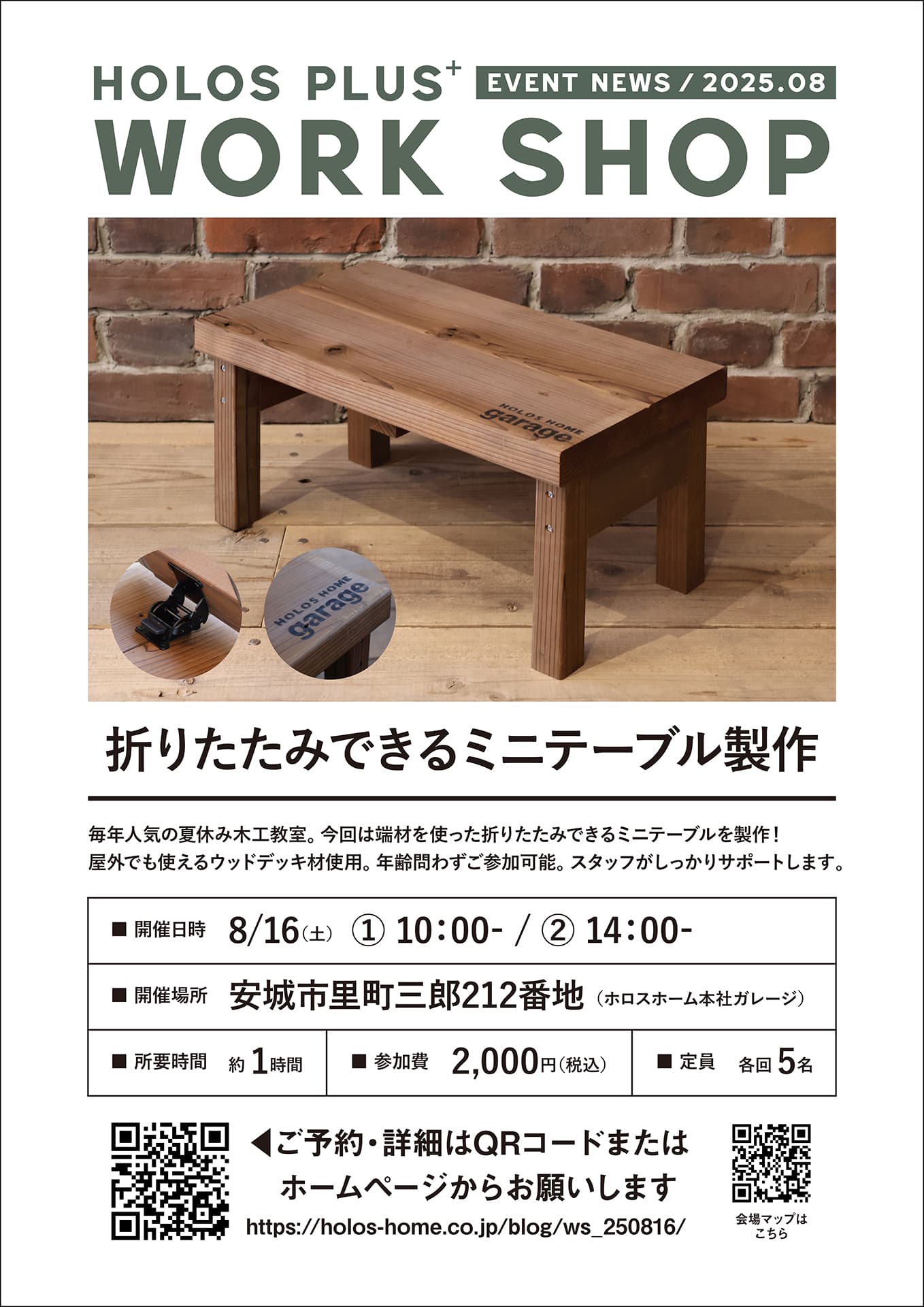 ■締め切りました【8/16sat】折りたたみできるミニテーブル製作 | ホロスプラスワークショップイベント