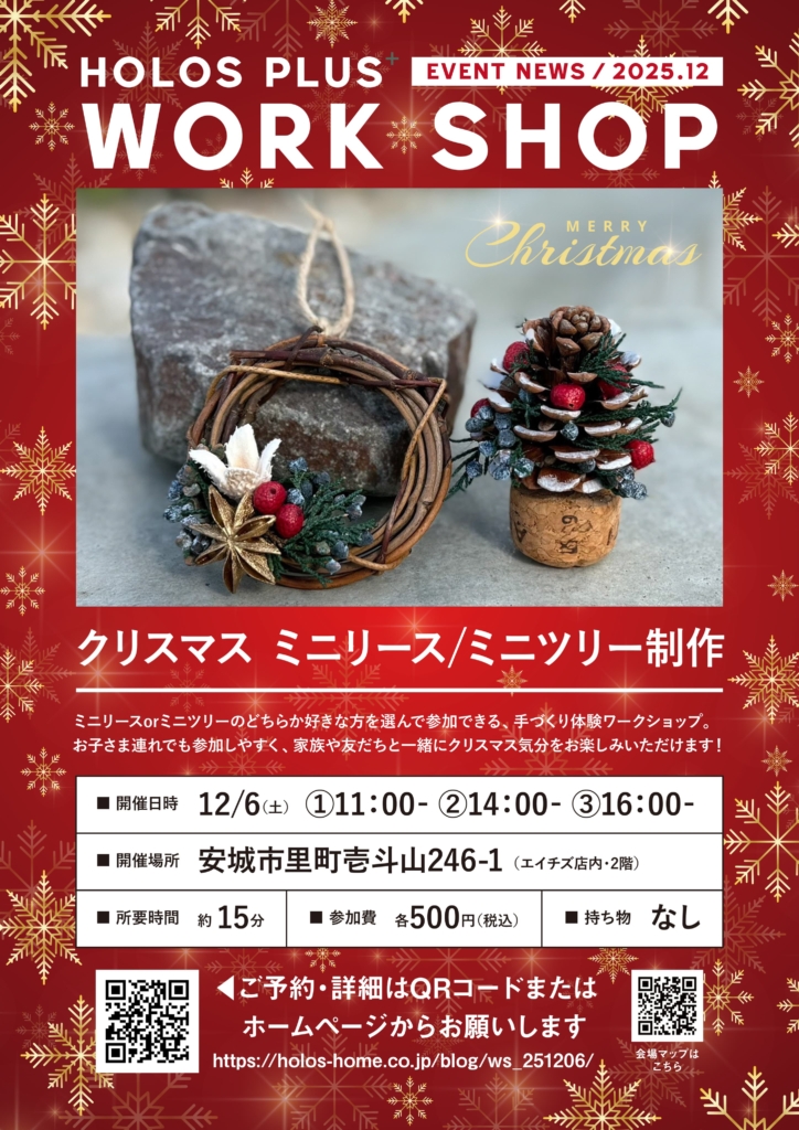 ■終了しました【12/6sat】クリスマス ミニリース/ミニツリー制作 | ホロスプラスワークショップイベント