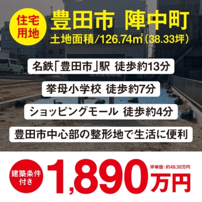 [no_toc] 物件情報 所在地 豊田市陣中町1丁目18番3(マップ) 名鉄三河線・豊田線 / 梅坪駅 徒歩9分 名鉄三河線・豊田線 / 豊田市・・・