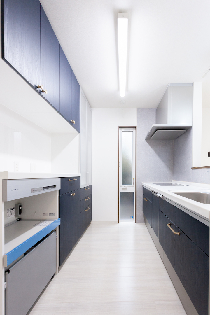 リビング・ダイニング・キッチンの基本カラーはホワイトとネイビー。