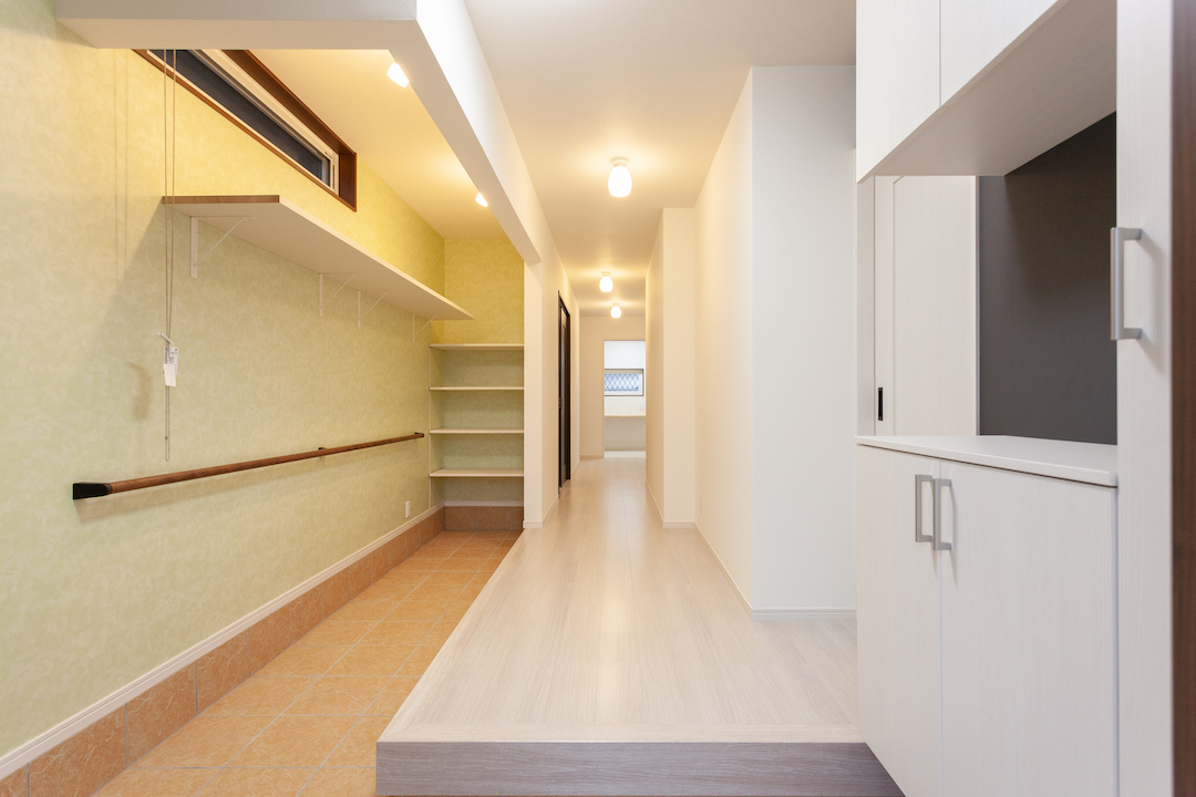 玄関を入って左には広々した土間収納のスペースを、右手には玄関収納。