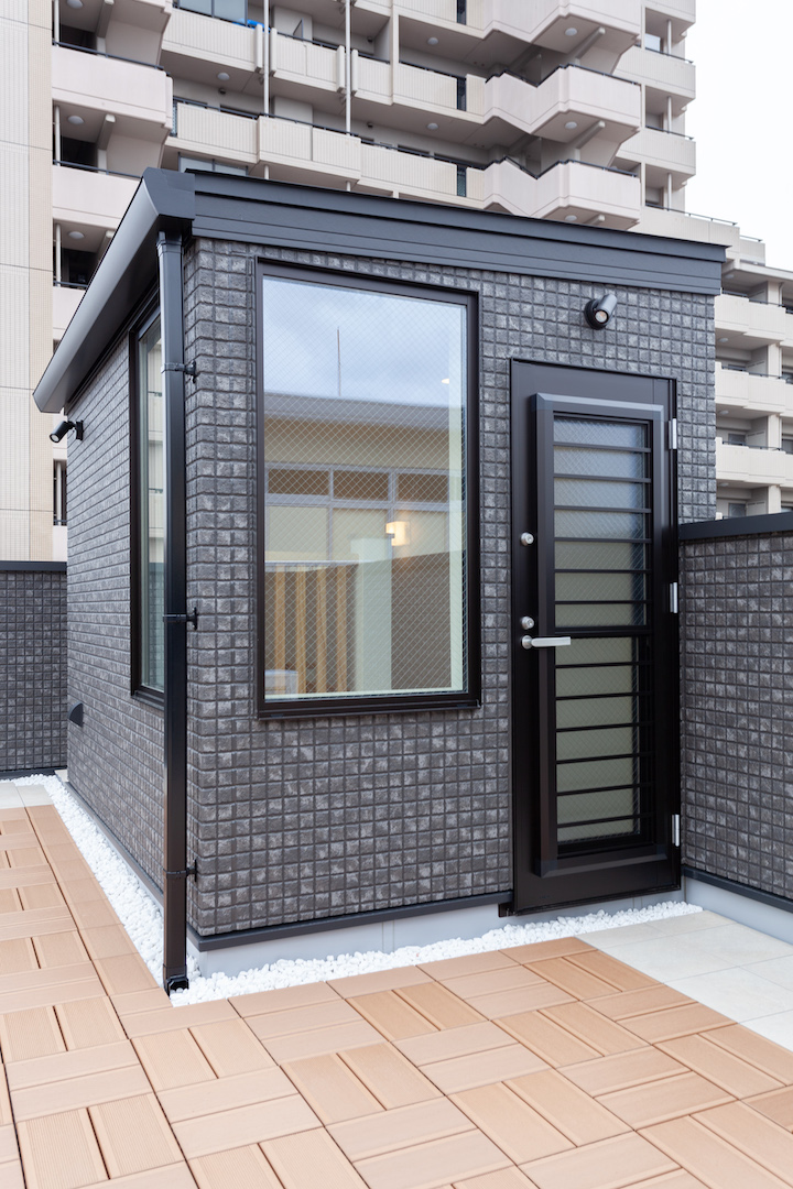 日当たり抜群ですので植物を育てたり、お客さんを招いてBBQしたり色々なことに活用できる屋上庭園です。