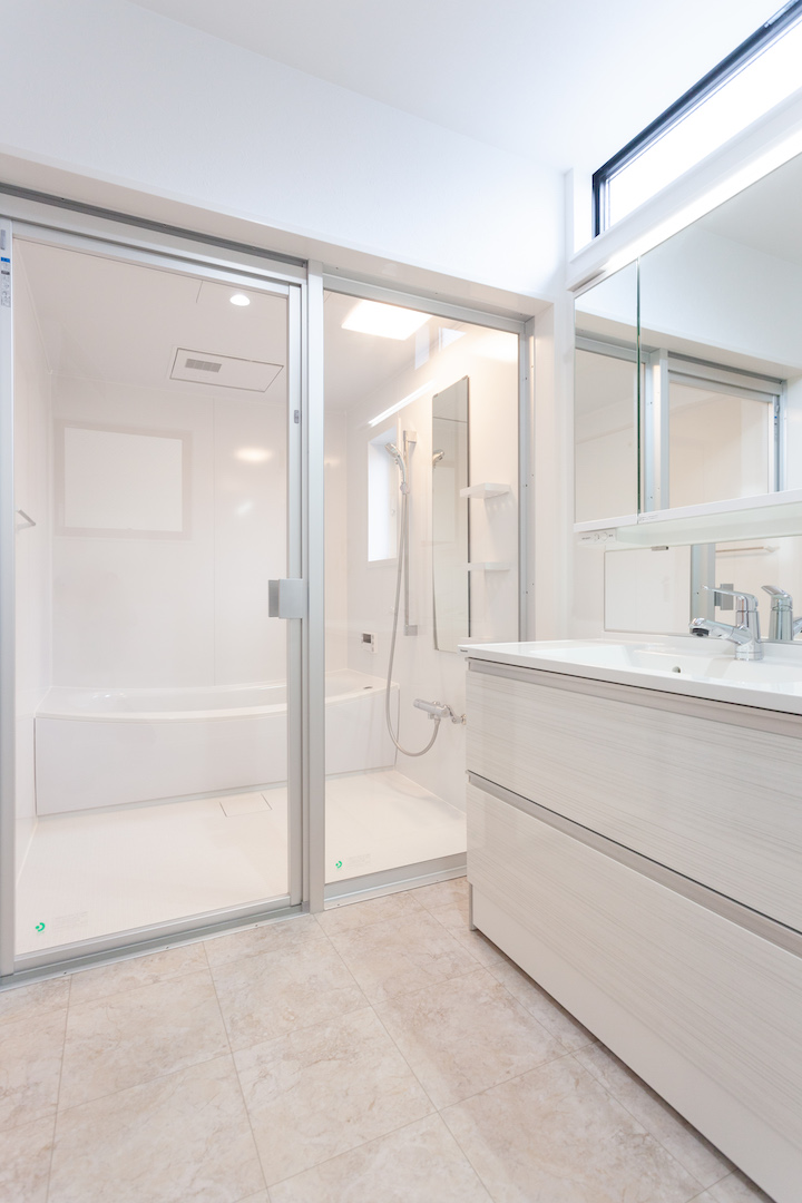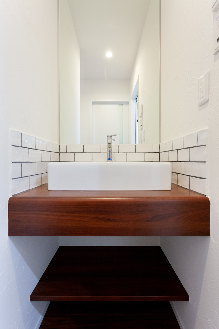 脱衣室の洗面台とは別に設けることで、忙しい朝でも混み合うことがなくなりますね。
