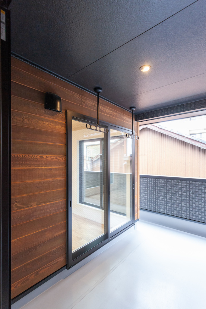 ブラックがベースですが、バルコニーの外壁にはレッドシダーを用い、アクセントを加えました。