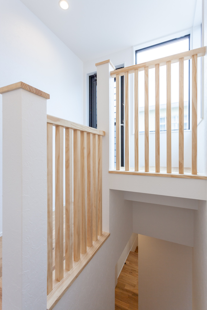 2階のフローリングは1階と同じ、ナラの無垢材を使用しており、オイル塗装を施しています。