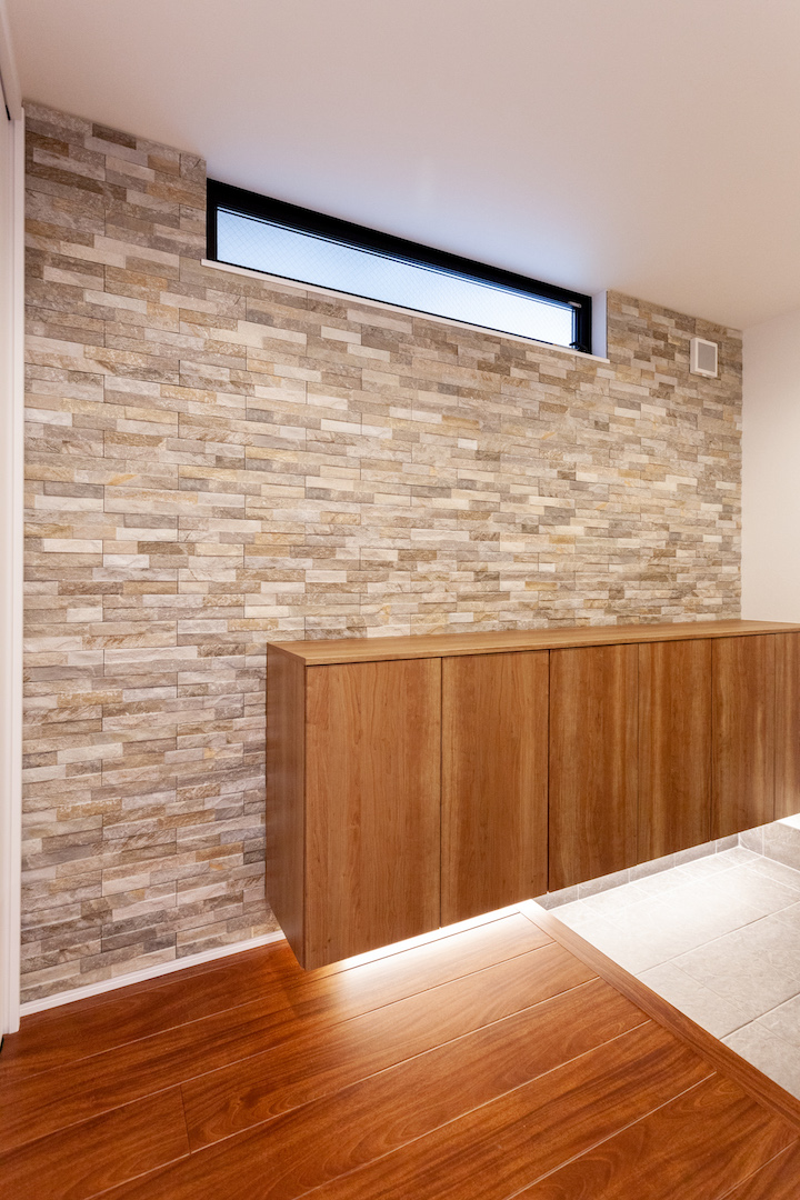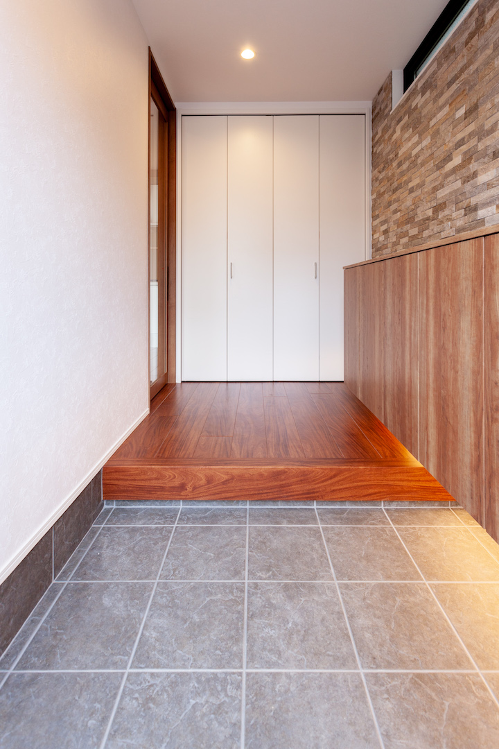 床には玄関と合わせナラの無垢材を使用し、ています。