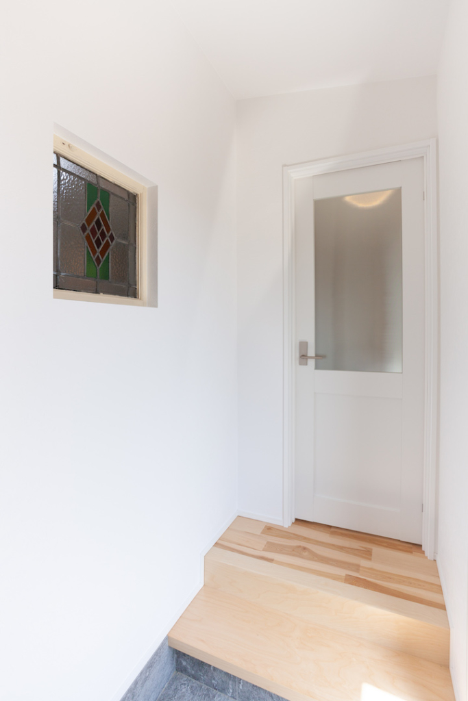 親世帯の方の玄関のステンドグラスは工事前にもあったものを残して使用しています。