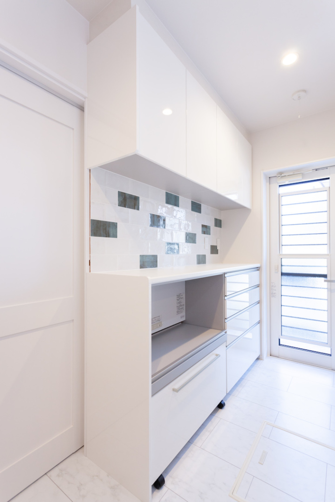 さらに、パントリーには食器棚に入らない大きな食器なども置けるので、キッチンをスッキリ見せることもできます。