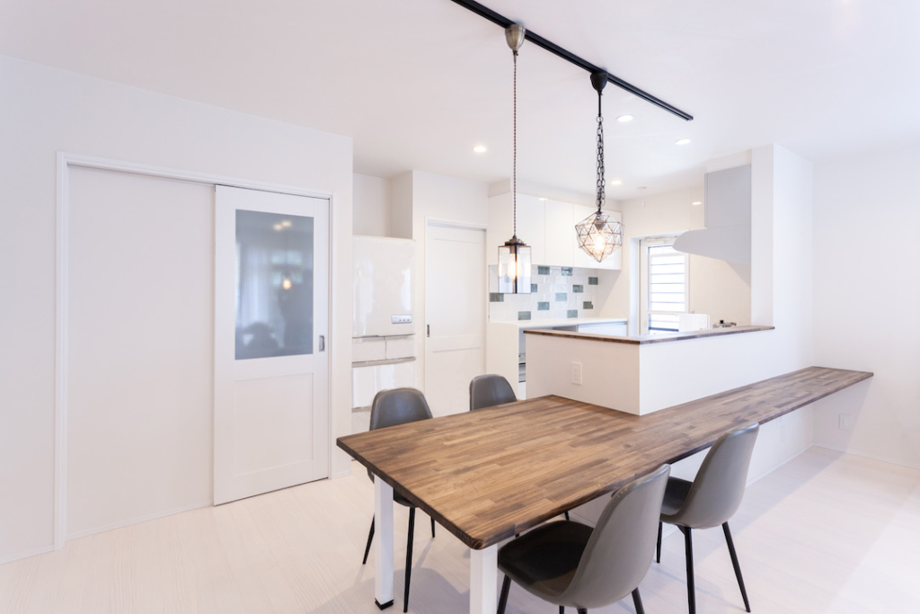 キッチンにテーブルを取り付けることで、出来上がった料理をすぐに並べることができます。