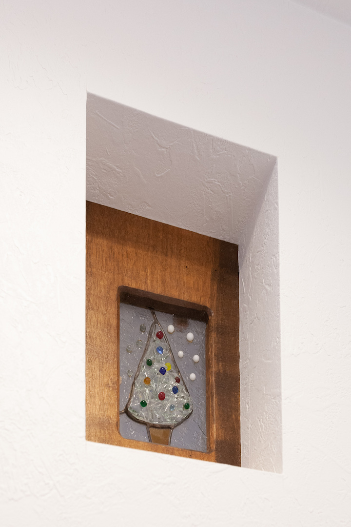 親世帯の方の玄関のステンドグラスは工事前にもあったものを残して使用しています。
