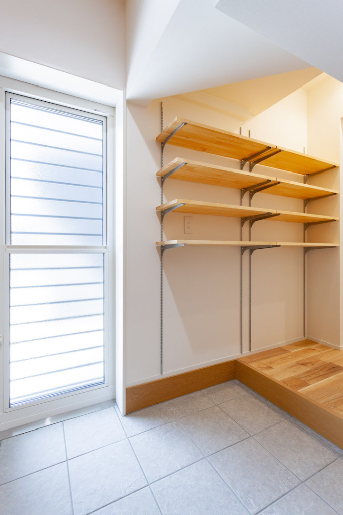 玄関とは別の勝手口直通なので、玄関はスッキリ片付いた状態をキープできます。
