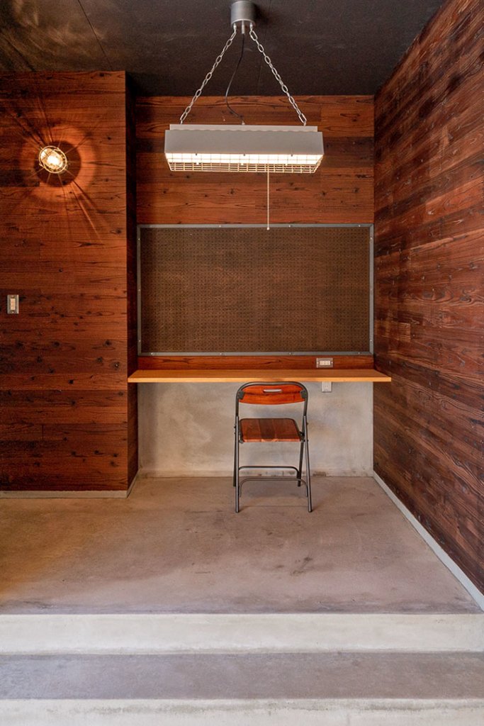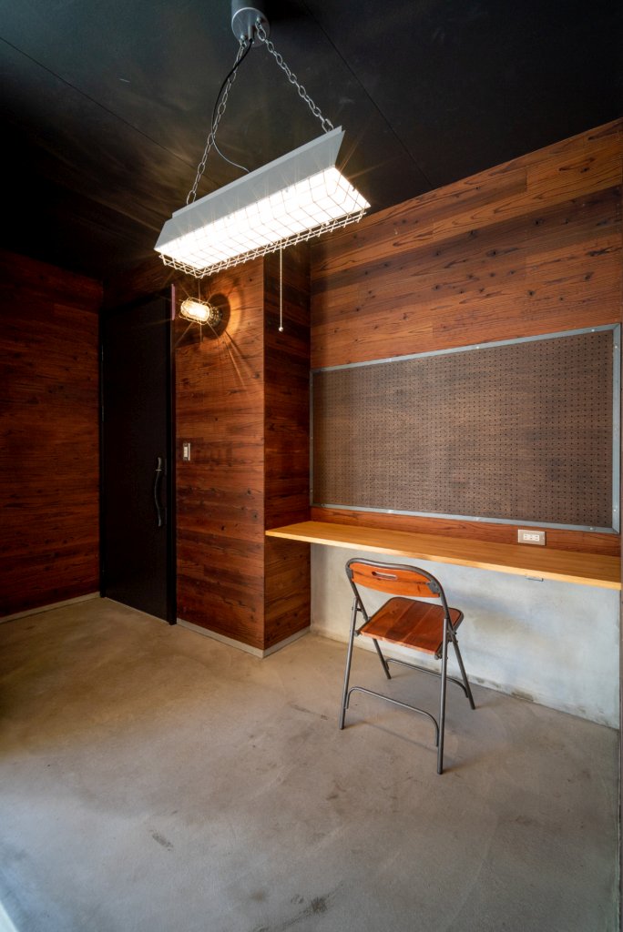 天井には杉板、壁にはOSB合板を貼り、木の温もりを感じる空間に。