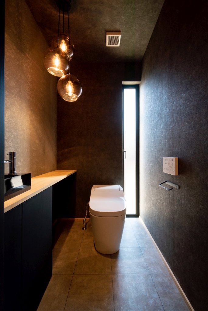 トイレはグレー・ブラックでまとめ、クールで落ち着きのある空間に。