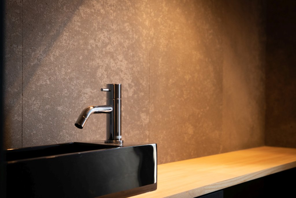 トイレカウンターの上部の壁にはSOLIDOを使用。