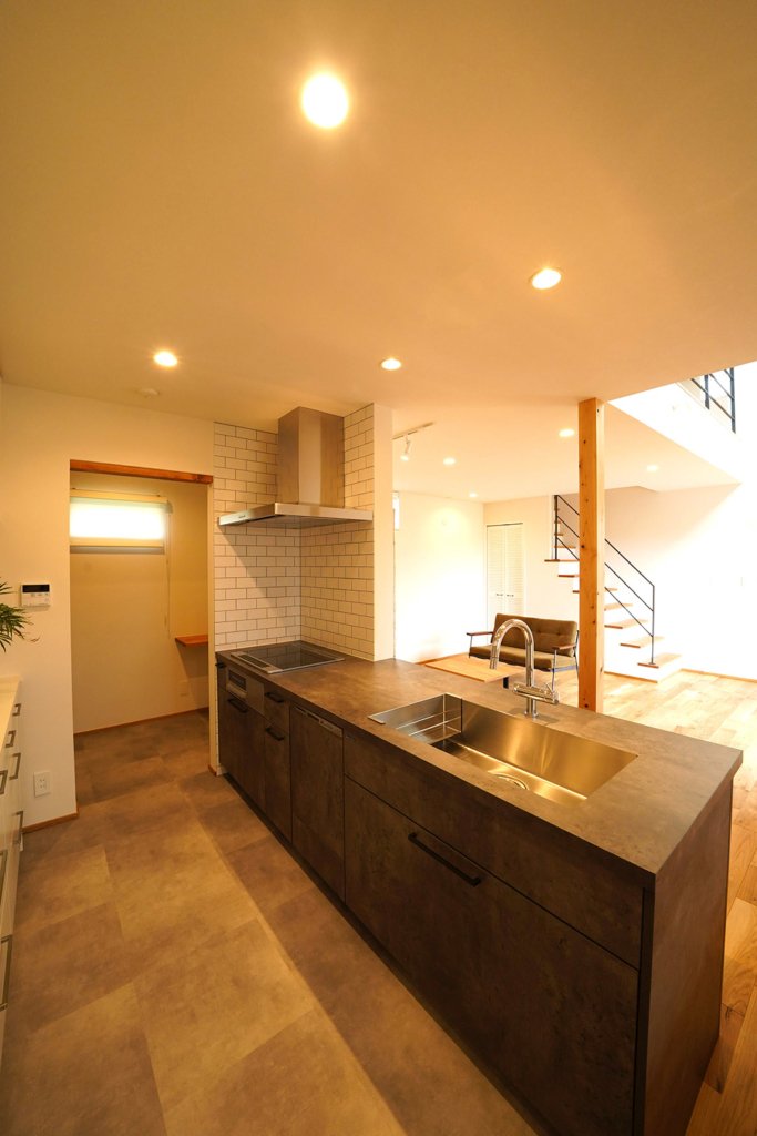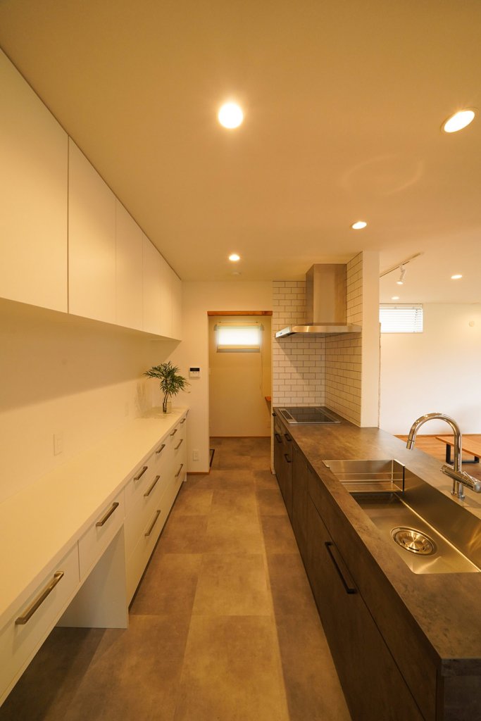 グラフテクトのキッチン。奥にはパントリーが見えます。