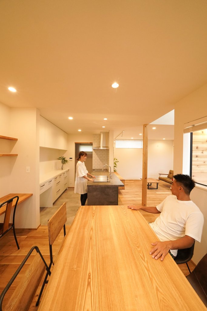 後ろにあるワークスペースは、家事の合間の作業や、お子様のスタディースペースにも使えます。
