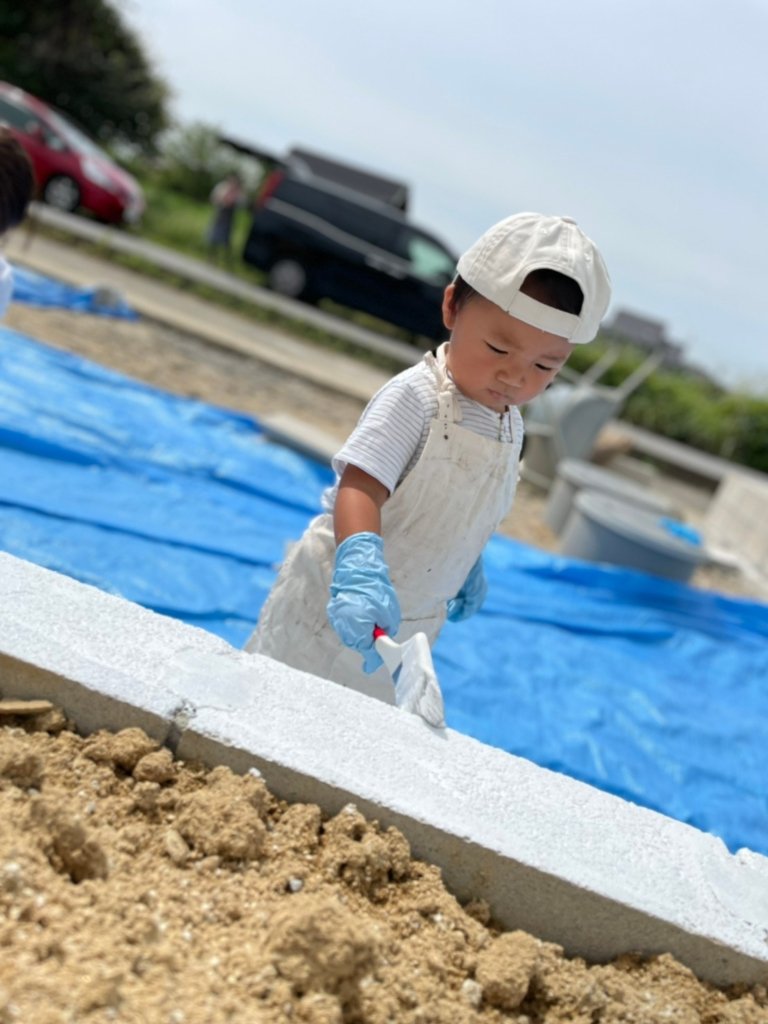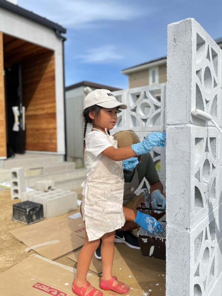 コンクリートブロックはお施主様のご家族総出で塗装を施しました。お家作りを楽しい家族の思い出に。