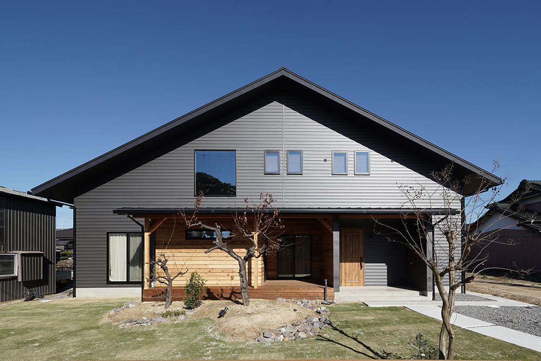 鎧張ガルバとカバードポーチのある三角屋根の家【愛知県刈谷市の注文住宅】