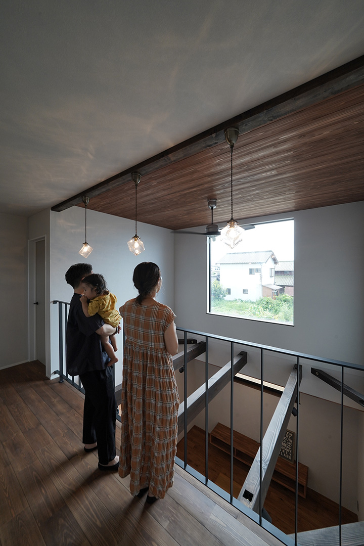 2階には吹抜けに面したサブリビング。手すりにはアイアンを使用することで抜け感が生まれます。