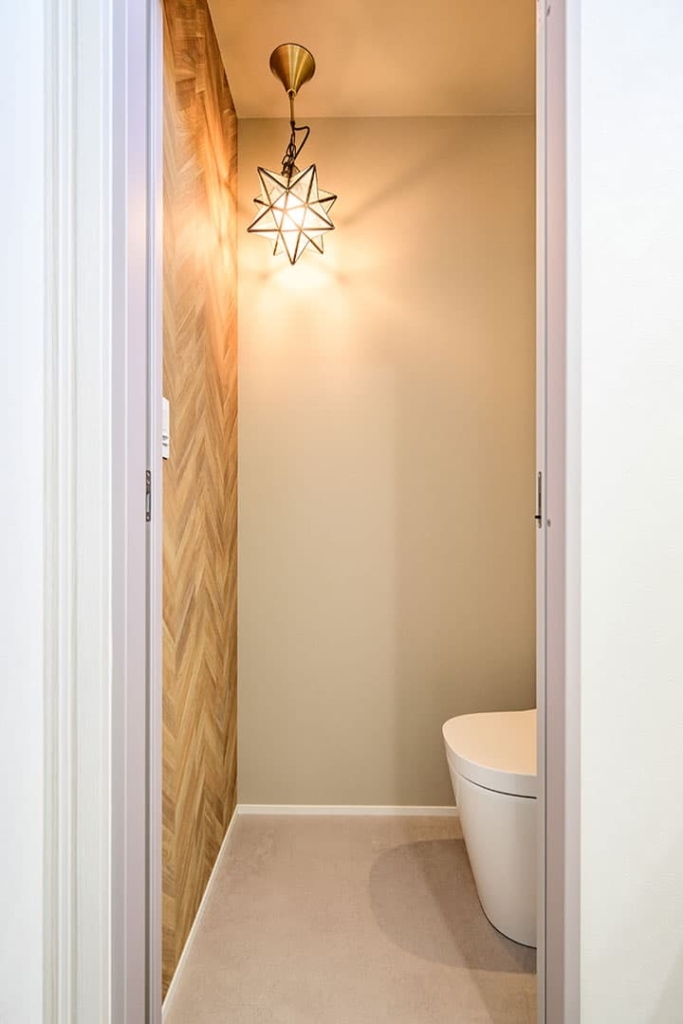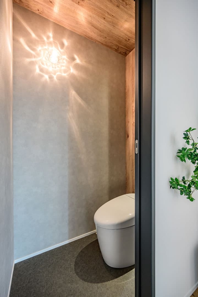 2箇所あるトイレはグレー×木目を基調に、それぞれご主人と奥様に色を決めていただきました。
