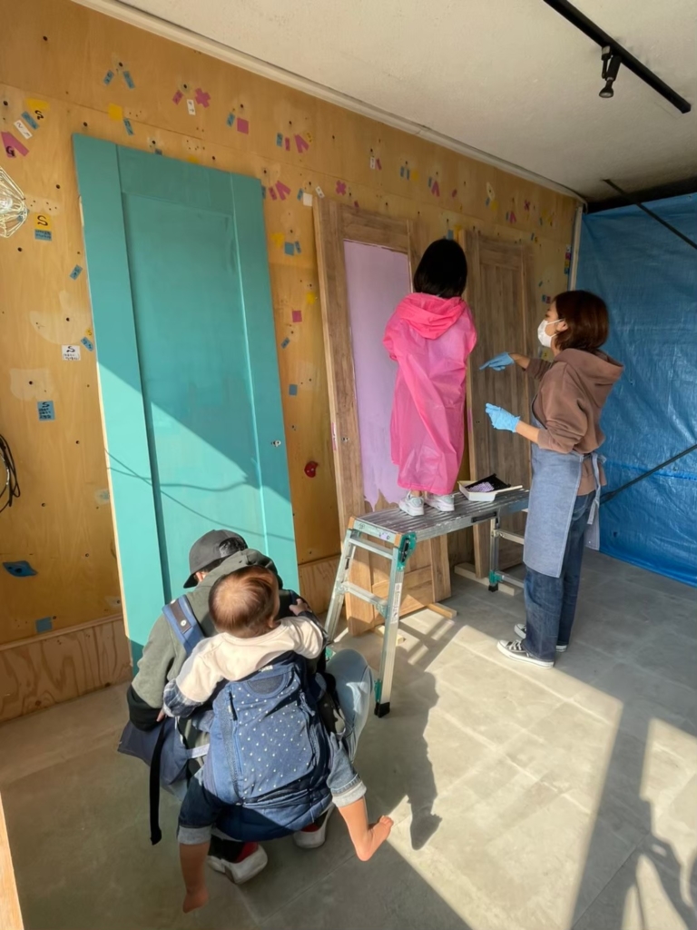 2階の扉は、お施主様ご家族が4色に塗装しました。