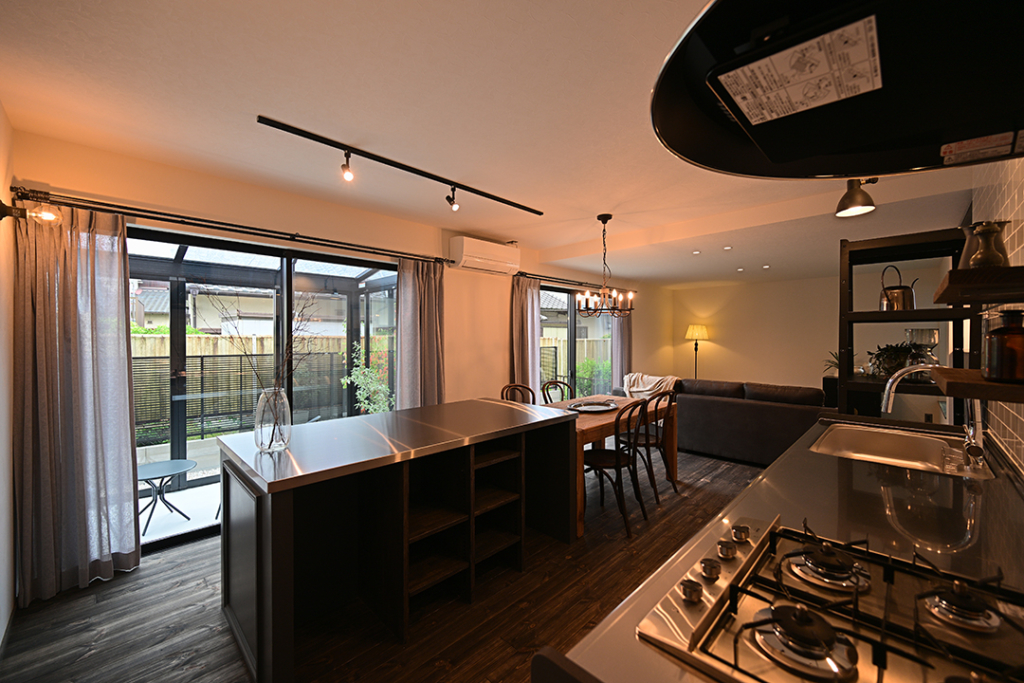 雨が降っても安心なサンルームでは洗濯物を干すのはもちろん、お庭の眺めてリラックスできます。