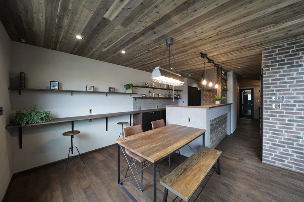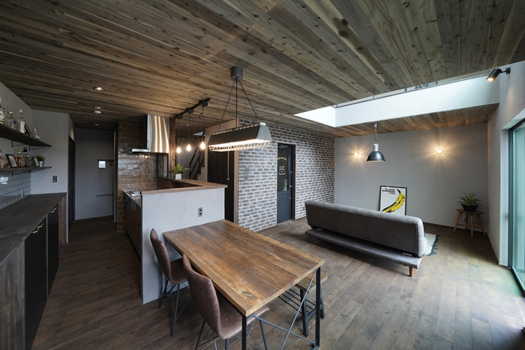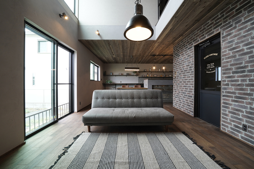 壁一面に貼られたレンガが、かっこいいヴィンテージスタイルの象徴になっています。