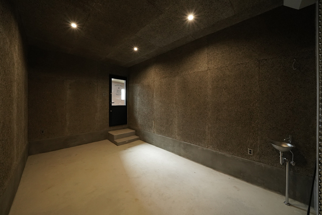 10帖のガレージの壁と天井には木毛セメント版を使用。