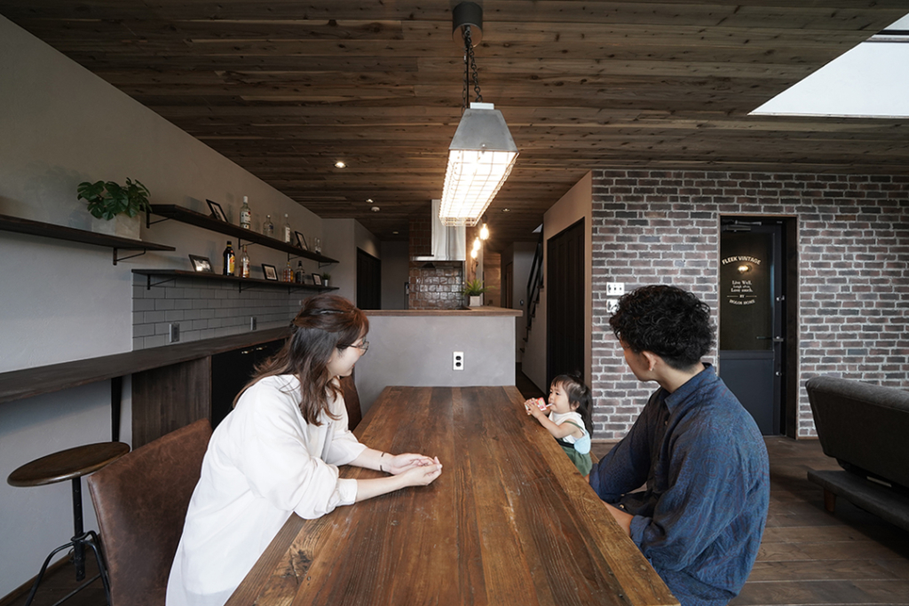 古材を使用したダイニングテーブルは、ホロスホームのオリジナル家具。